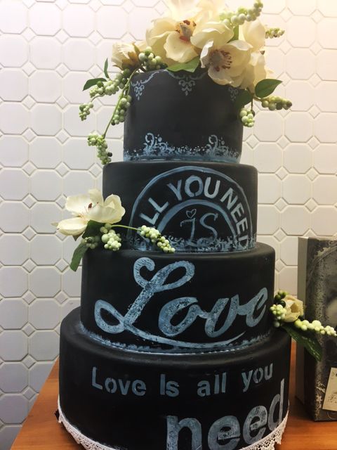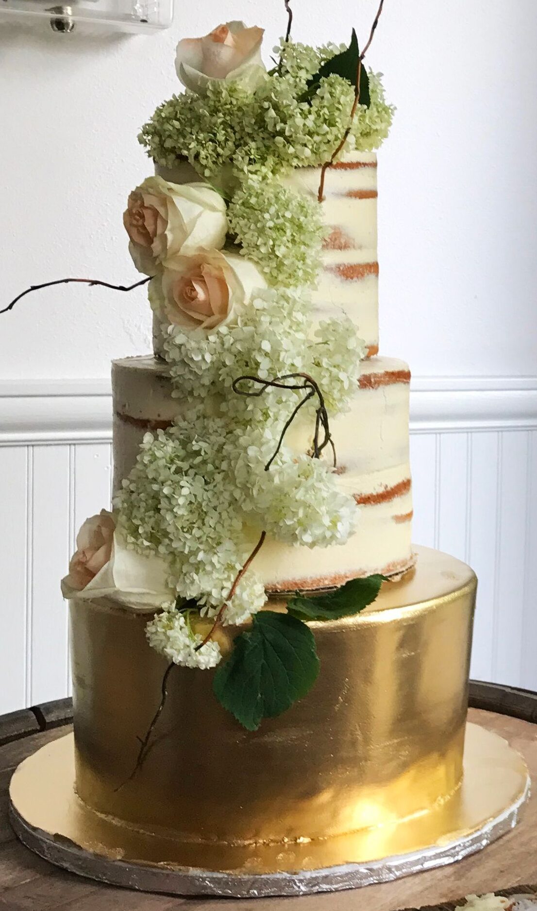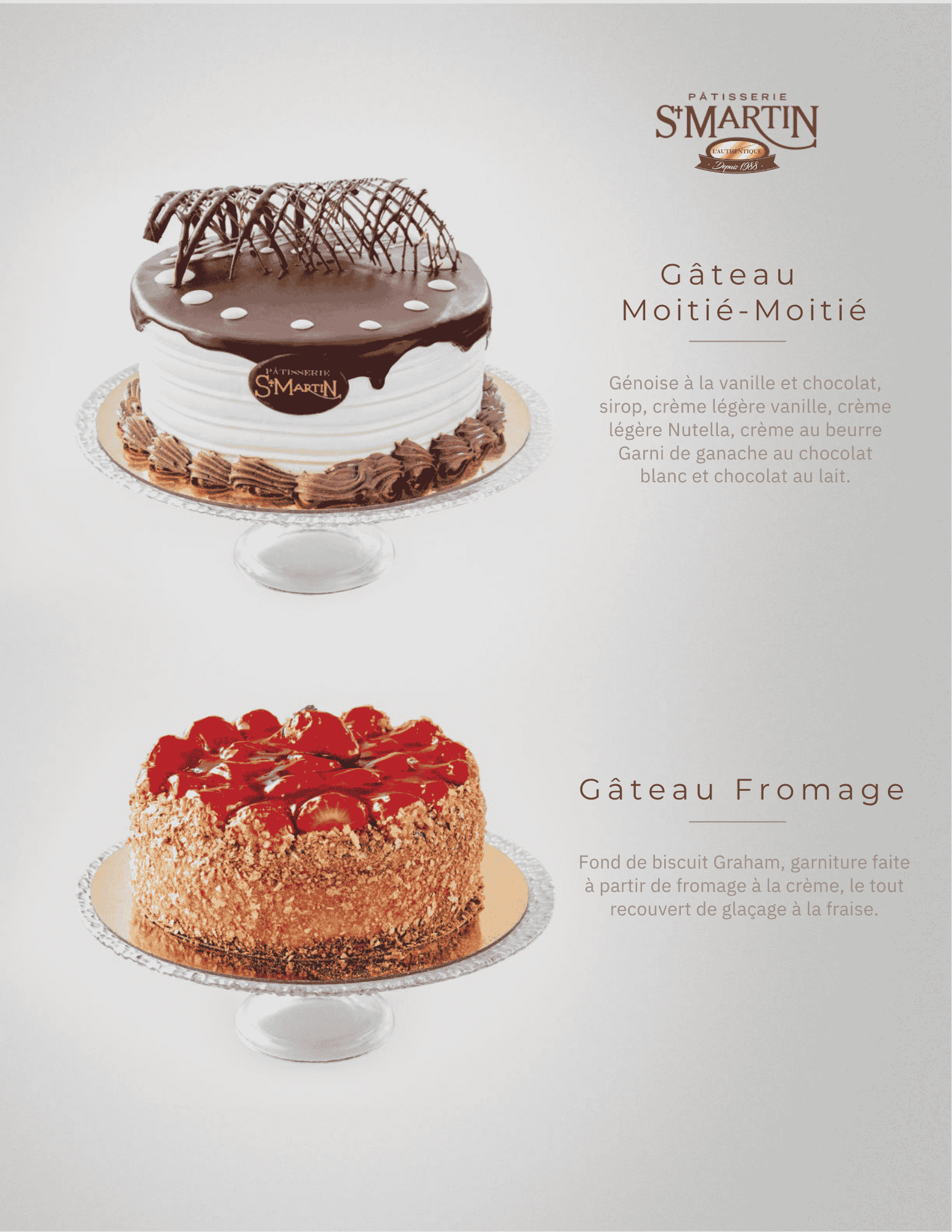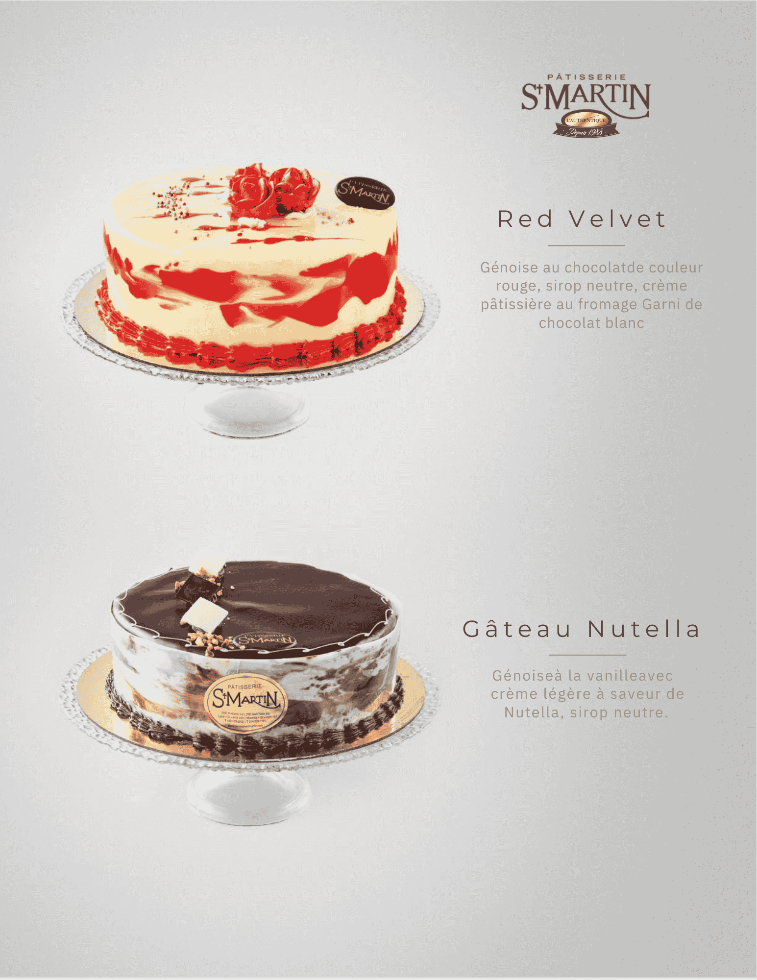 Gâteaux Moitié-moitié Gâteaux éponge vanille et chocolat, sirop neutre, crème légère vanille et Nutella, crème au beurre, ganache, chocolat blanc et chocolat décoratif.