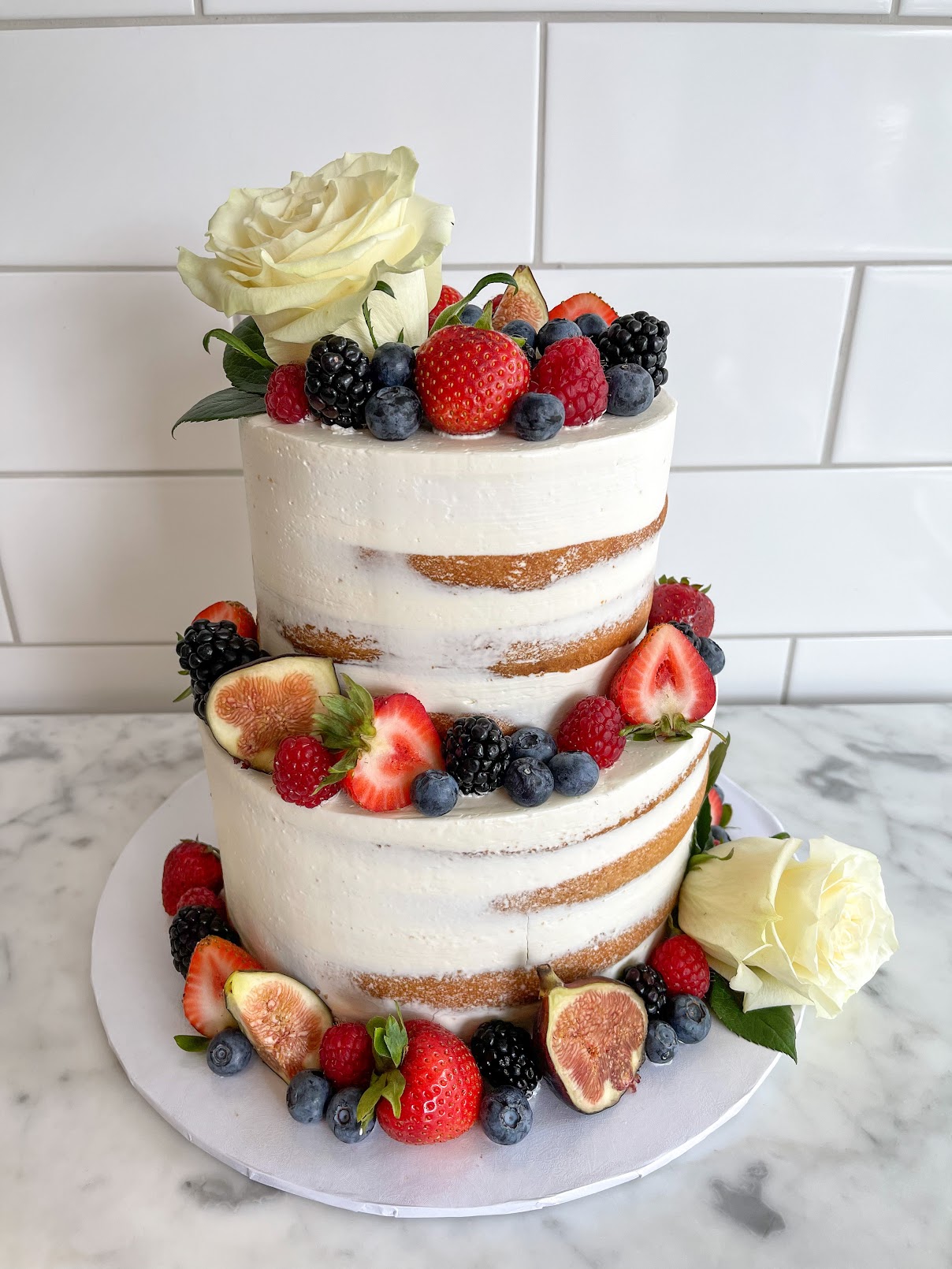 Raspberry Naked Cake Génoise à la vanille, crème Chantilly et framboise.