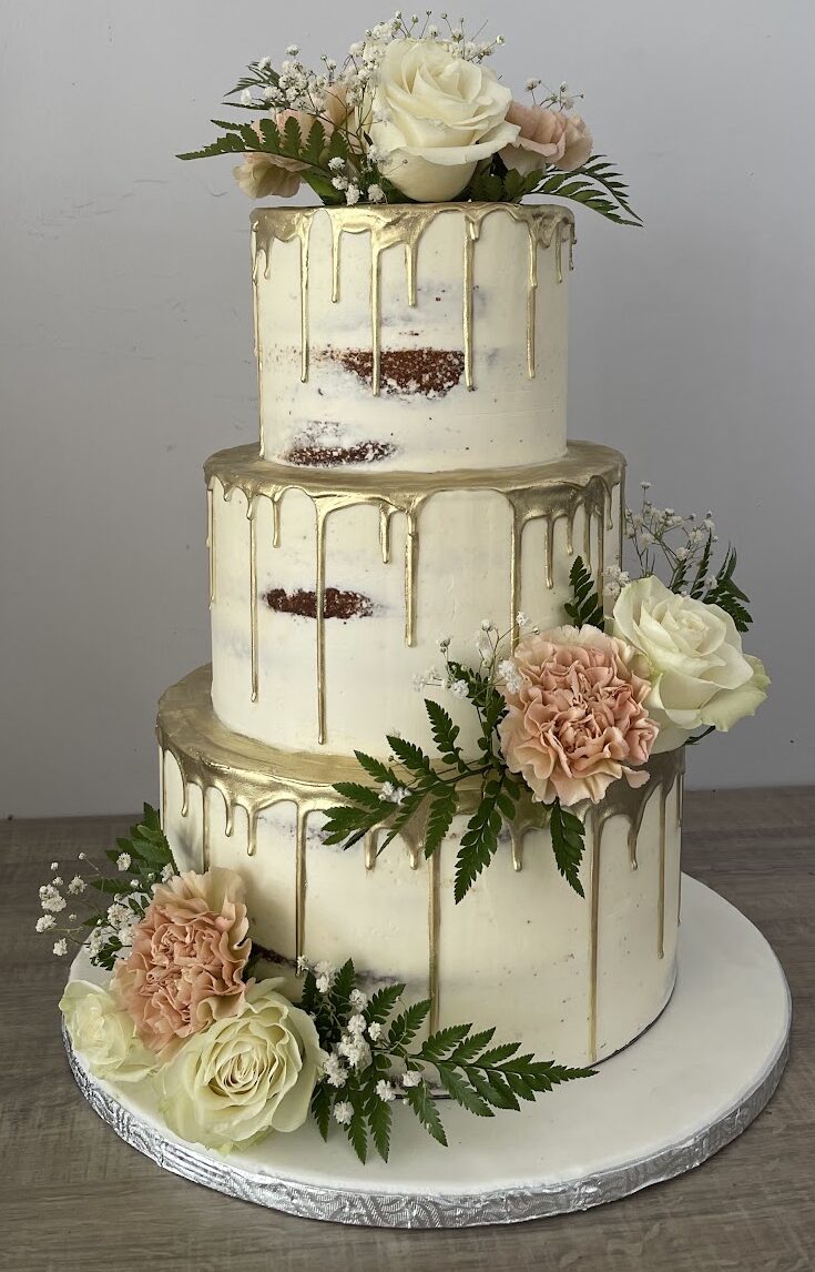 Cannoli Cake Gâteau éponge vanille, sirop neutre, garniture au fromage ricotta et pépites de chocolat, décor extérieur de cannoli et chocolat.