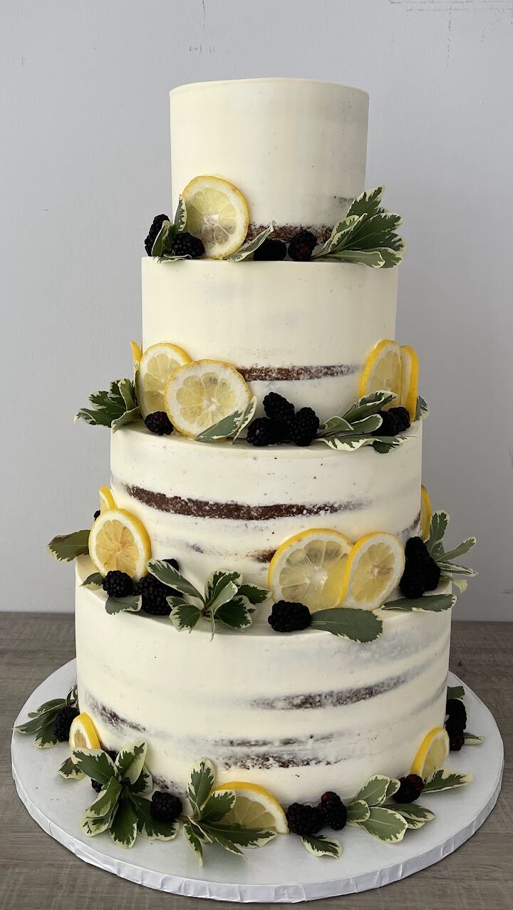 Lemoncello Génoise au citron avec mousseline au lemoncello, finie avec mousseline limoncello et tranche de citron (sans alcool).