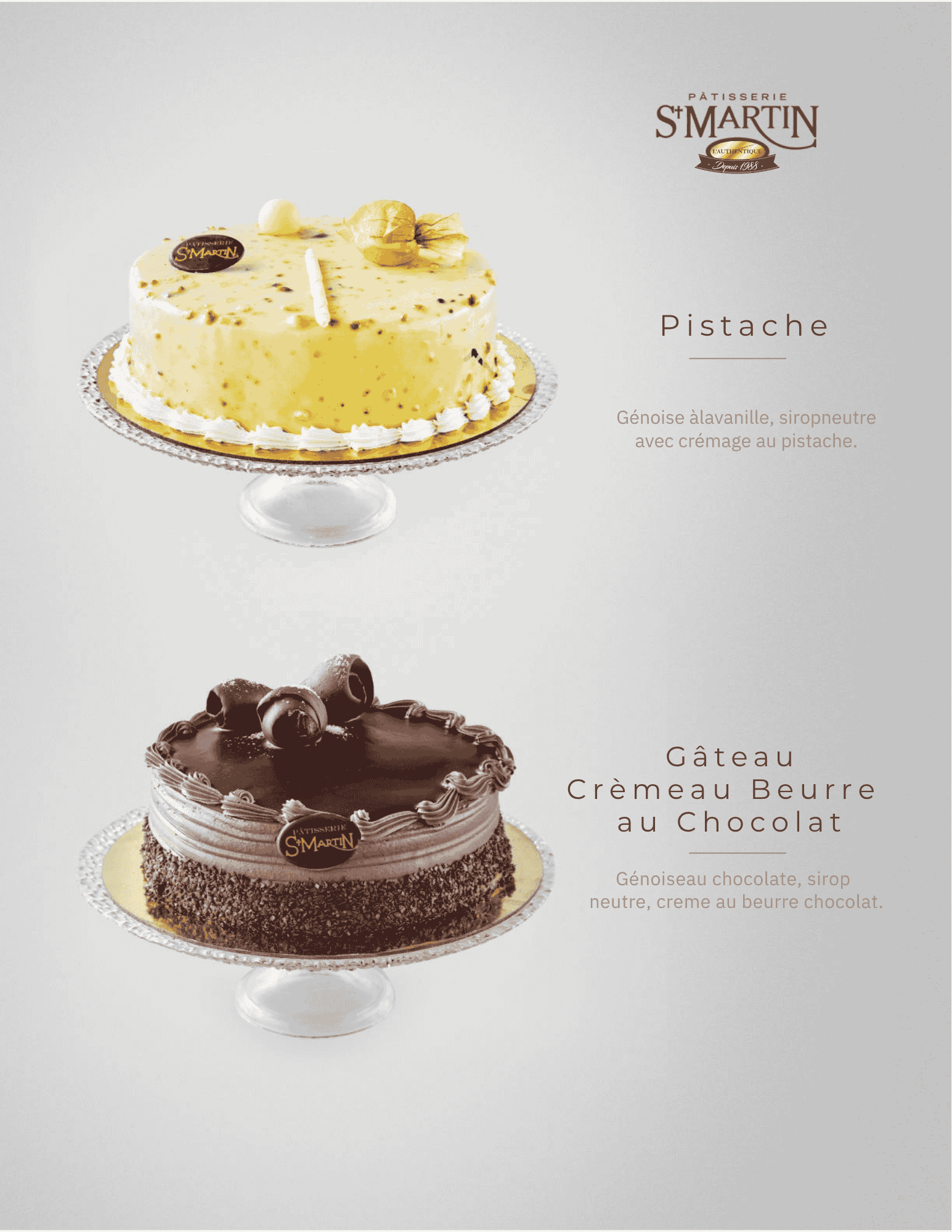Gâteaux Chocolat Crème au Beurre Gâteaux éponge au chocolat garnis d’une crème au beurre chocolat, sirop neutre et décor en chocolat.