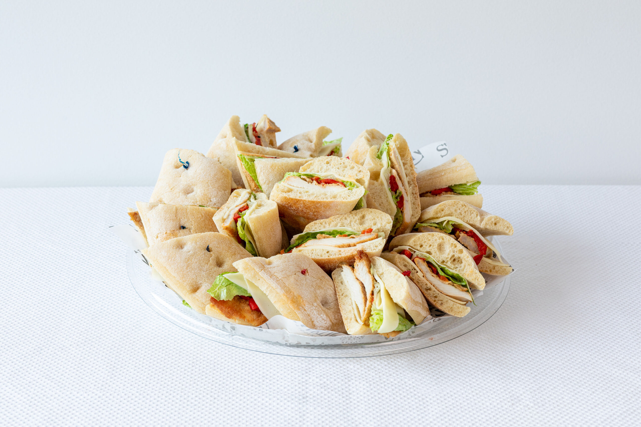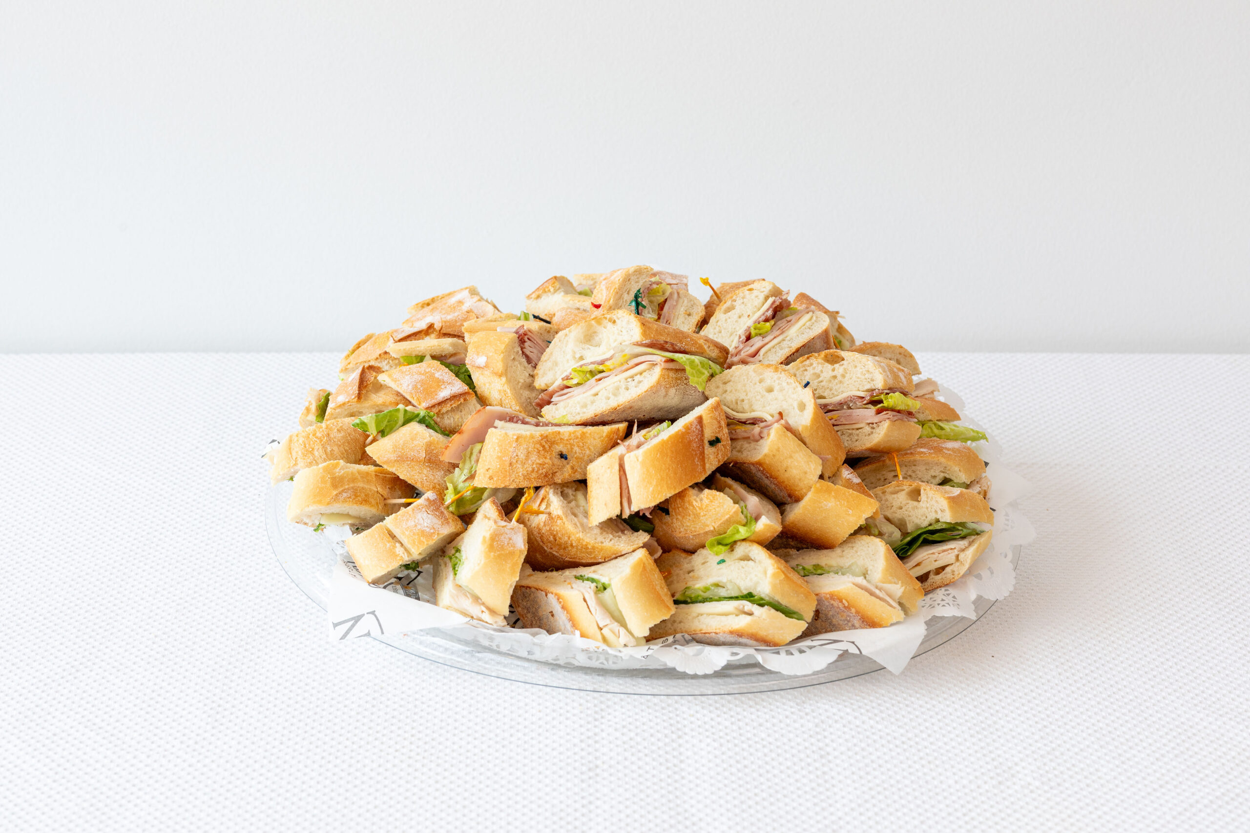 • Plateau de baguettes farcies avec la garniture de votre choix, fromage provolone et laitue (ex. trio italien, jambon ou dinde)