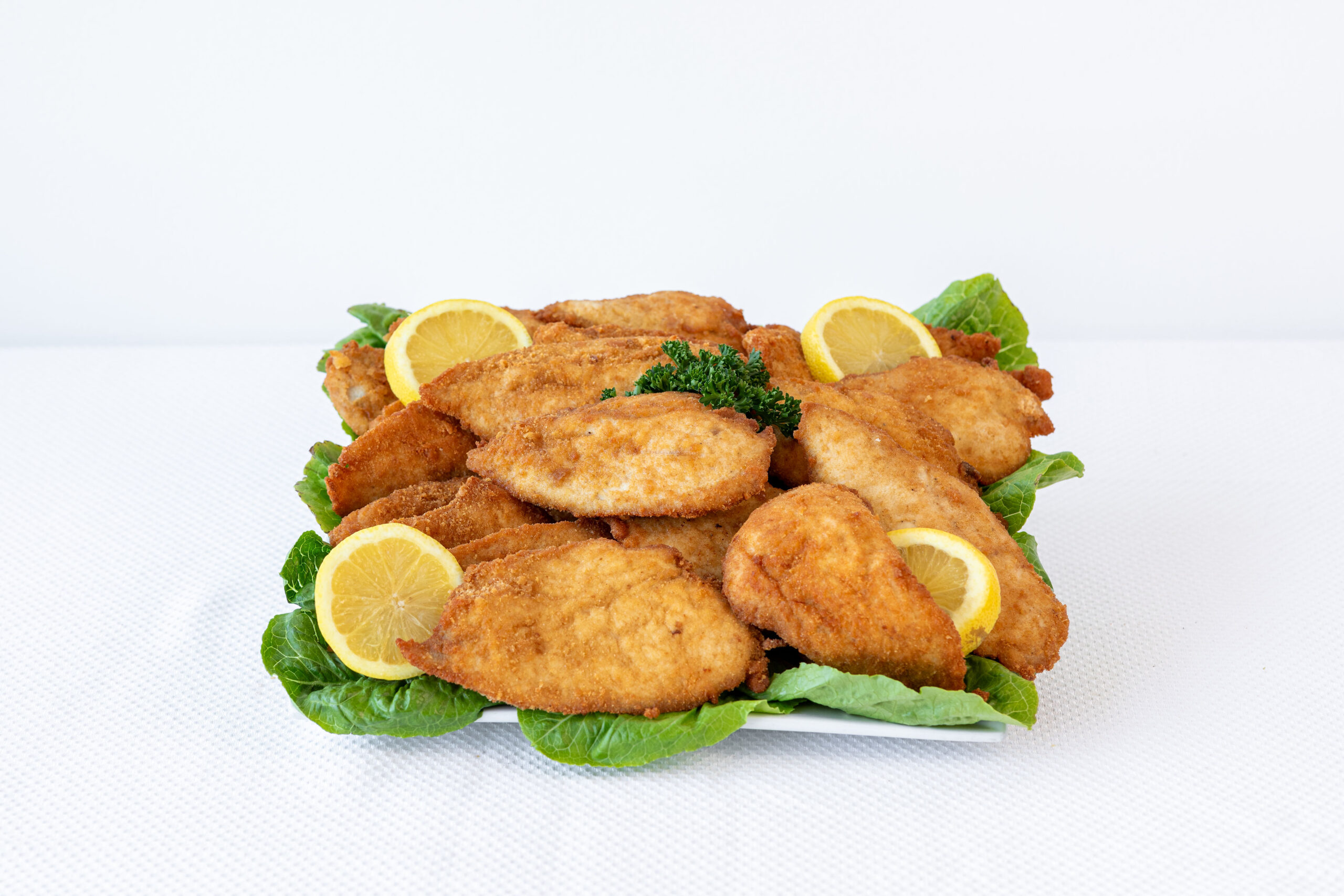 Escalope panée de veau ou de poulet, garnie de sauce tomate maison et de fromage fondant, gratinée au four à l’italienne.