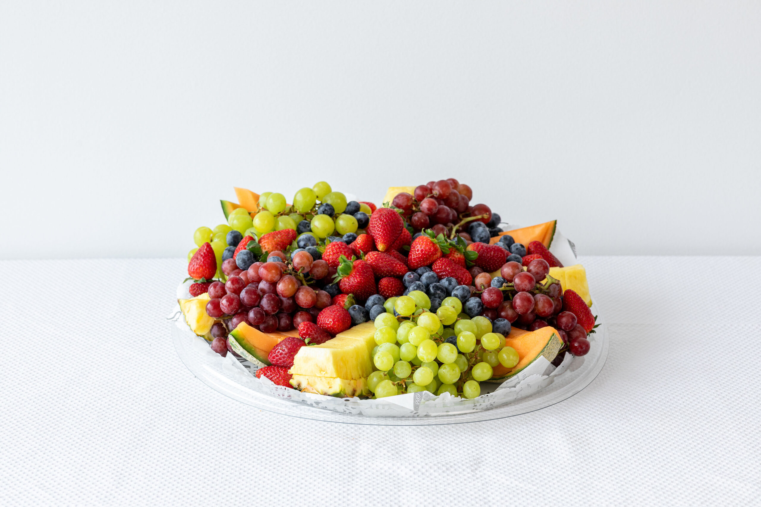 Sélection de fruits de saison (raisins, melon, fraises, etc.)